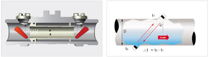 As the fluid flows through the tube, the reflectors and ultrasonic sensors installed on both sides use time differences to detect the flow velocity. The measured propagation time is accurately calibrated and displayed by the internal program designed by the Company. Reflectors are also precisely machined to ensure non-interrupted transmission of ultrasonic waves without adsorbing any pollutant contained in the water.