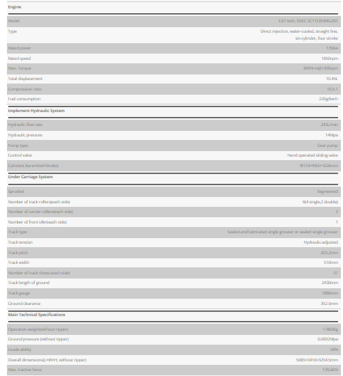 The C series engine contains the technologies of the imported engine of the CATERPILLAR 3306 of America. Key machining, inspecting and testing equipment for the engine were imported when the CATERPILLAR 3306 engine was being introduced. In 2006, SDEC upgraded the C series engine incorporation with FEV (Germany) to improve its power performance as well as fuel economy and to reduce its emissions. The upgraded C series engine has high power, low fuel consumption, and excellent reliability, carrying on the legend of KING OF POWER.