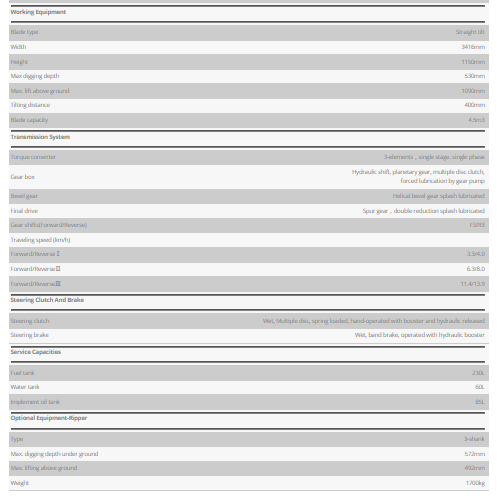 The gearbox is of the planetary gears type, by operating hydraulic control valve for traveling forward and backward. It features planetary gears, multi-disc clutch, hydraulically applied forced lubrication, 3 speeds forward and 3 speeds backwards.
