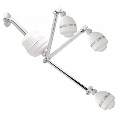 This shower head height extension arm is excellent for the entire family. This shower head arm-extender swings up as far as 9″ for tall people and swings down for kids, or for when you don’t want to get your hair wet. This shower head arm-extender has a total height adjustment of 18″.