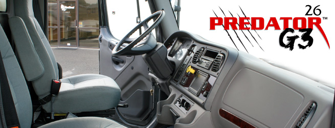 Lower wind resistance and a 7,000 lb + per hour processing speed combine to make the Predator G3 26 the most overall fuel efficient and cost effective shredding vehicle available. All Predator G3 26 trucks come equipped with our state of the art computerized “Fuel Saver” management system that can be programmed to shut down both the shredder and the truck engine when the machine has cleared of paper.