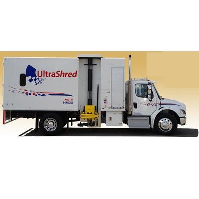 With a 6,500 lb. payload, this Shred Truck has it all: reliability, speed, payload and security. The Predator G3 26 HM30 is UltraShred’s latest model option. It features new higher payload capacities and inside bin storage along with the proven reliability of its big brother, the standard Predator G3 26. Like the standard G3 26, the chassis is equipped with a long list of upgraded features not found on most of its competitor`s offerings. Like all UltraShred shred trucks, it can be customized with options to make operation safer and more efficient. Bin storage inside the shredder compartment will accommodate up to three 64 gallon or two 96 gallon containers along with some consoles.