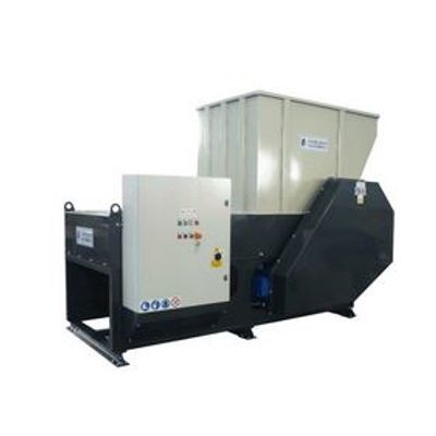 The operator then starts the machine through the control panel. The hydraulically controlled feed plate pushes the material against the slow-turning shredding rotor. The rotor, fitted with a set of hard metal inserts, shreds the material with the assistance of a fixed blade. Upon completion of feeding, the plate goes back automatically and repeats the cycle.
