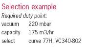 Curves are valid tor dry air wich a temperature ot 15"C at blower inlet and a pressure ot 1013 mbarla) at inlet or outlet connection (lor compression or vacuum respectively).