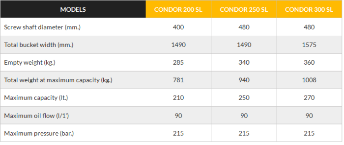 Side discharge Cement Mixers CONDOR SL models, designed to increase safety in the yard, since the first test has shown the unique ability to create an equable mixture even when fully loaded without unbalancing the concrete by left and right depending on the direction of the screw shaft rotation. The concrete unload takes few seconds and the bucket is fully discharged. This performance upgrade offered on two models of CONDOR SL is possible thanks to helix and halberds mixing system which study has the inscription in the UE Design Register (No. 001888652-0004).