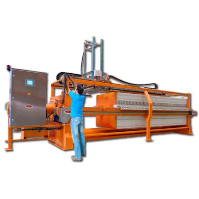 Complete automation sludge dewatering cycle. Only suitable for mineral sludge. Maximum filtering surface: 1.5m² at 132.3m². Maximum filtering surface: 92 m² at 129 m². Plate size: 1200 mm.