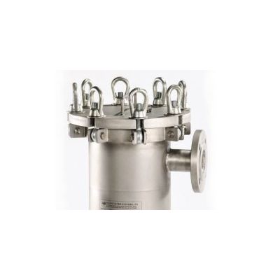 The RBF series is a side entry, recessed basket design filter bag housing. It features a tri-clover top cover plate which is held in place by three reclining swing bolts with eye nuts, and seals with a single o ring. One of the nuts acts as a hinge. The cover plate also has a lid stop and an integrated lifting handle, and can be orientated to 3 different opening positions.