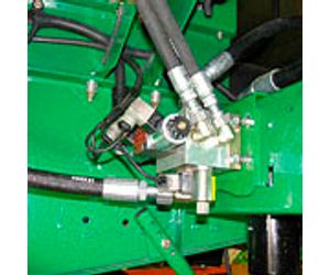 The Sidehill`s hydraulic circuit flow is developed from an independent gear pump mounted directly to the output shaft on the combine`s rear engine housing. This isolates the leveling systems pressure functions away from the combine`s main hydraulic circuits for improved reliability and simplified diagnostics. Carefully engineered to maximize performance and minimize horsepower consumption, this sidehill leveling system delivers power and speed to keep your STS combine agile and responsive in the steepest sidehill terrain. An optional premium pressure-flow compensated hydraulic pump is available for the ultimate in horsepower efficiency
