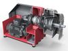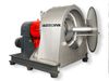 Furthermore, on screen worm centrifuges and in decanters the speed differential between the solid-conveying worm and the bowl is decisive. It determines the time which the solid spends in the centrifuge and so the quality of the drying. The correct speed differential for your separation task is determined by the correct choice of gear unit. The speed differential here may be constant, but may also be variable. In the latter case the back-drive, where the otherwise fixed gear input shaft is also driven, is used. If the worm speed is required to be kept completely independent of the drum speed, hydraulic drives (viscotherms) or two-stage gear units with an upstream differential planetary stage are used.