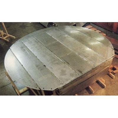 Sieve trays became a dominate tower internal for mass transfer columns in the 1950`s owing to their simple shape and ease of manufacture. This made sieve trays a popular device for extensive research and as a result, a considerable amount of experience has been gained for tray design and it`s application. Sieve trays are flat perforated plates in which vapour is forced through the holes into the cross flowing liquid. Vapour flow prevents liquid from leaking (weeping) through the holes. At low vapour velocities, liquid weeping through the holes occurs, which bypasses a portion of the tray active area and reduces efficiency, giving sieve trays relatively low turndown (approx. 2-2.5:1). The Raschig Jaeger Group has the capability to design and manufacture virtually any type of sieve tray. Tray hole sizes down to 3.2 mm in diameter are offered.