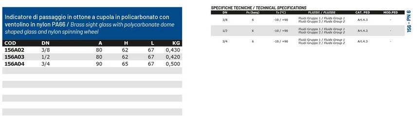 Rubinetterie Paracchini - Model 156 - PN 6 -Sight Glasses Valve