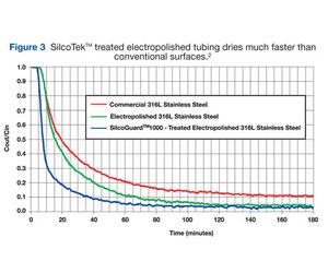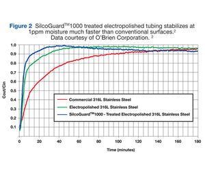 Gas transfer systems serving the semiconductor industry require low moisture content. Data for wet-up and dry-down experiments, measuring the relative response time for moisture content change in treated electropolished stainless steel tubing and standard 316L stainless steel tubing demonstrates a great advantage in using SilcoGuard 1000 treated versus untreated tubing.
