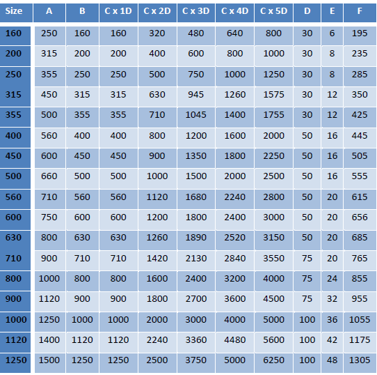 Circular silencers are available with either spigot or flanged ends or with threaded inserts, and with or without pods. Overall length of silencer fitted with spigots is C + 2D, flanged unit overall length is C. Materials of construction available: Polypropylene, Fire-retardant Polypropylene and PVC, all sizes can be GRP reinforced if required