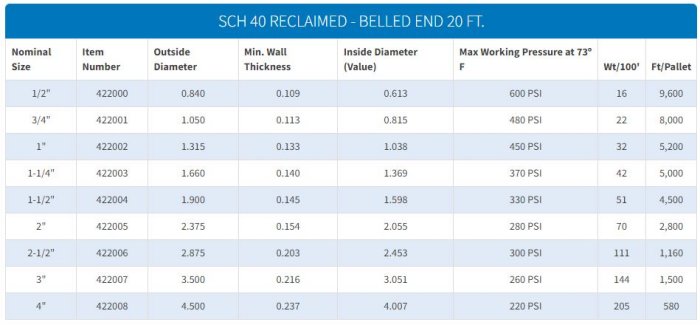 Schedule 40 Reclaimed - Standard Compliances: ASTM D-1785, standard for pressure pipe. All reclaimed items are marked “Reclaimed Water – Do Not Drink”.