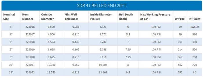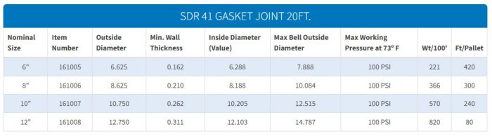 SDR 41 - Standard Compliances: ASTM D-2241, standard for pressure pipe.