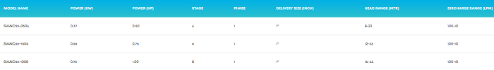 Head Range: Up To 44 Metres. Flow Rate: Up To 100 LPM. Delivery Size: 1``. Power Rating: 0.37 - 0.75 kW (0.50 HP To 1.00 HP) (1 Phase). Voltage Range: 180 V - 250 V (1 Phase).