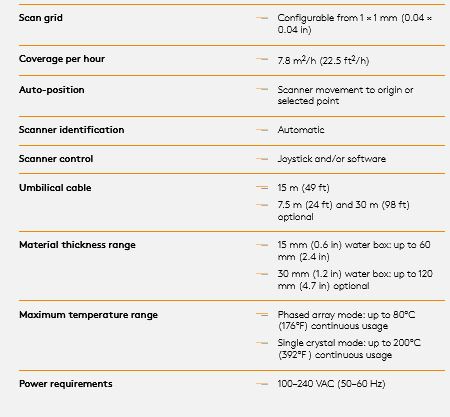, the RMS PA automated corrosion mapping system can help increase productivity, without sacrificing probability of detection, thanks to a 1 mm (0.040 in) resolution.