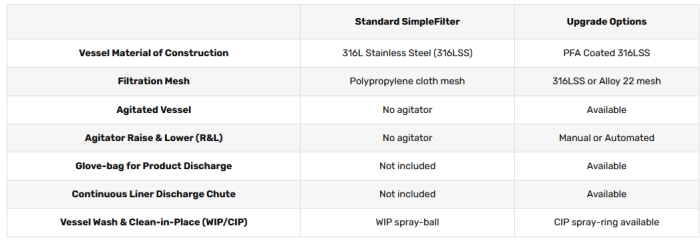 Being one of the early pioneers of containment technology, PSL has made all of its SimpleFilter™ models compatible with contained discharge technology.