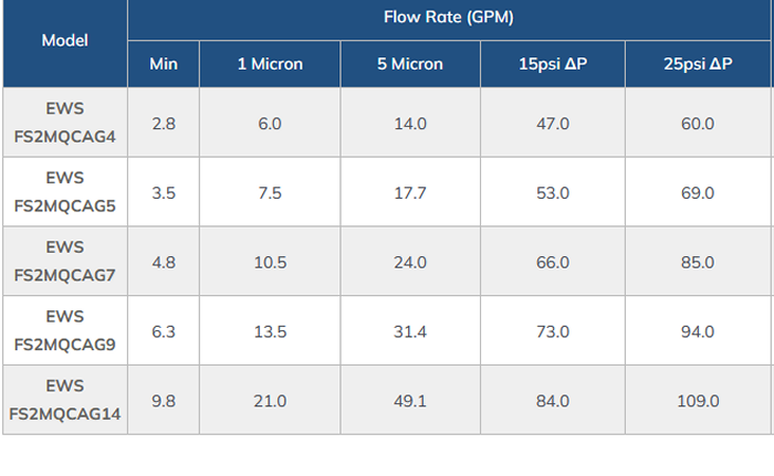 - Flow Rates: 2.8 - 49.1 GPM