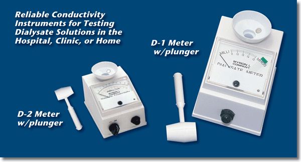 - Solutions: Myron L® standard solutions are precisely formulated and are used to recalibrate Dialysate Meters for greatest accuracy. The 12.5, 13.4 and 14.0 millimhos Standards are the same used in Myron L® factory calibration of Models D-1 and D-2.