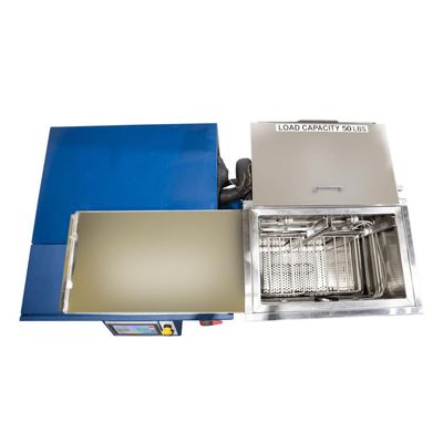 The SMH Single Axis is one of Baron Blakeslee`s most affordable material handling systems. The SMH Hoist is a simple, affordable, easy to maintain single axis material handling solutions. The SMH is available on small M Series vapor degreasing systems. The operator places the basket onto the carrier tray located in the freeboard zone and begins the cleaning cycle. The process proceeds automatically and when completed, the operator removes the basket from the tray. The SMH may operate with degreaser cover closed.
