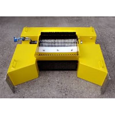 A lightweight rotary tri-skimmer that features interchangeable brush, drum and disk oil-recovery banks for recovering light, medium and heavy viscosities at high rates. Oil is collected by the rotating oleophilic recovery banks and is removed for collection by scraper blades. A transfer pump, mounted to the skimmer or placed on the shore or vessel, transfers the oil into a collection tank via a 2-in or 3-in hose. The skimmer and pump can both be hydraulically powered and controlled by a dual-circuit diesel/hydraulic power pack or by separate power systems. The skimming system can also be operated pneumatically using compressed air packages.