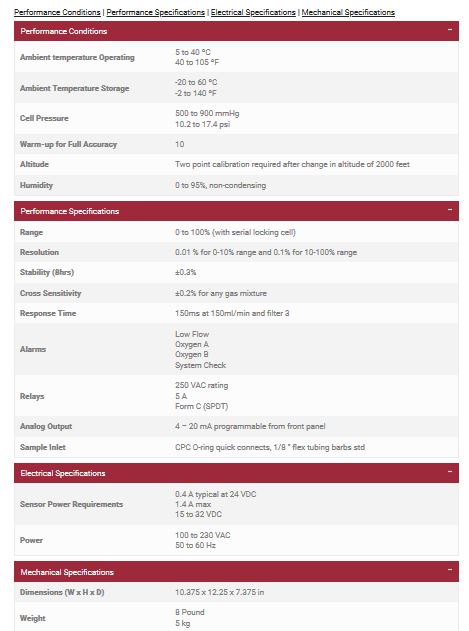 The Model O2L features an easy to use and feature bright LED displays, touch panel controls, easy calibration, and has a sampling pump and internal flow meter for monitoring flow in the system. A terminal strip on the rear panel is included for analog relay alarm outputs , 4-20 mA outputs, and an analog 0-1.0 VDC output is on a BNC connector. A DB-9 connector RS-232 digital output provides digital serial communications and is compatible with Oxisoft software. The unit has CPC O-ring quick connect inlet fittings for industrial applications.
