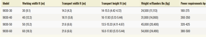 There is 6 x 8 x 1/2-inch wall tubing at the front and rear of main frames and throughout. All main frames and large wings use a dual walking tandem axle design, while the small wings use single wheels with the same 3-inch spindle for commonality of parts. The main frame uses 20 ply tires to match the weight of the drill.