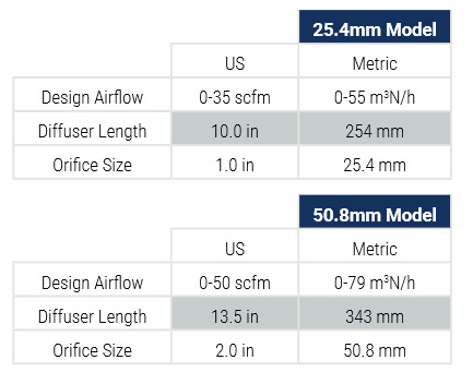 Material Features: Clog resistant, large diameter diffuser elements with above water air distribution piping. 1” & 2” nominal pipe sizes available. Turbulent mixing with multiple shear planes and edge contours to fragment bubbles for maximum efficiency. High bubble shear for maximum mixing. Low maintenance. ABS—non-corrosive construction.