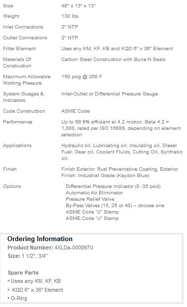 Kaydon - Model VKS-2 -Single Element Filter Vessels