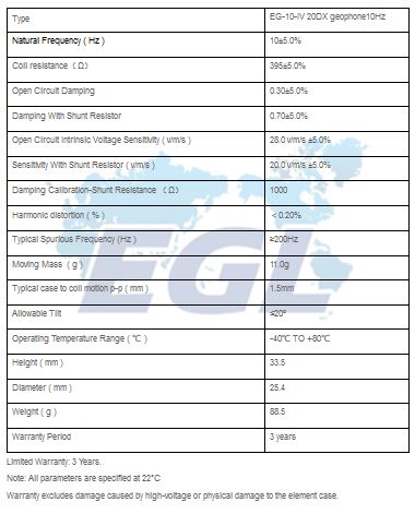 Single geophone10Hz vertical in marsh case. Single 20DX geophone10Hz Vertical in marsh case, with 2 m leader cable and terminated with KCK Screw Fit Male Connector.