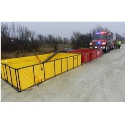 The Single Lane Tank® facilitates maximum flow rates for water AND water tender traffic.  Two or more of our SLT® 2000 tanks will give you maximum capacity on the ground without affecting the opposite lane of traffic.  The SLT® is a must for narrow rural roads having little or no shoulder!  The SLT® comes in various frames and liner fabrics.  Frame sizes are 8`x14`x29" with steel or aluminum tubing.  The liner fabrics to choose from are all 22 oz. vinyl, 22 oz. vinyl sides with 30 oz. floor, all 22 oz. HPR, 22 oz. HPR sides with 30 oz. floor and all 30 oz. vinyl.  To help keep the flow of water and eleminate any lift is the side mounted stabalizing flange plate assembly.  The assembly includes: mounting plate, flange (sizes available are 4", 5" and 6".  The mounting plate is also adaptable to any folding frame tank and model.