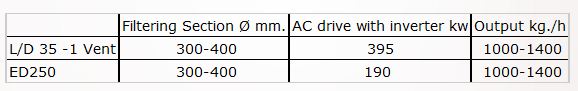 Example of ES180/ED250 plant composition for plastic recycling such as polyethylene, polypropylene. The composition of the plants is customized according to the specific needs of our customers.