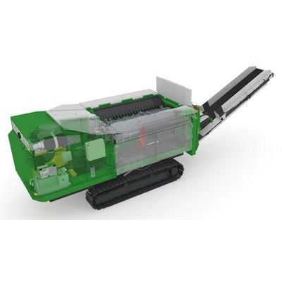 The Terminator is a slow-running, single-shaft shredder for all types of waste. Robust teeth on the shredding drum and the opposing counter comb give coarse pre-crushing to a defined shredding size. The continuous cutting gap adjustment allows precise setting of the particle size for subsequent process steps. The hydraulic drive with load-dependent speed control ensures maximum utilization of the engine output. The hook lift platform, 3-axle chassis and steel tracks with hydraulic drive options provide excellent mobility. Performance: Diesel engine with 242/328/429 kW. Hydraulic drum drive. Mobility options: Trailer, Track, Hook.