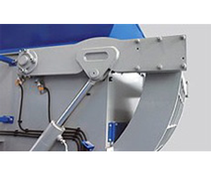 Sturdy pivoting ram with heavy duty guide bearings and universal couplings for reliable and continuous operation.