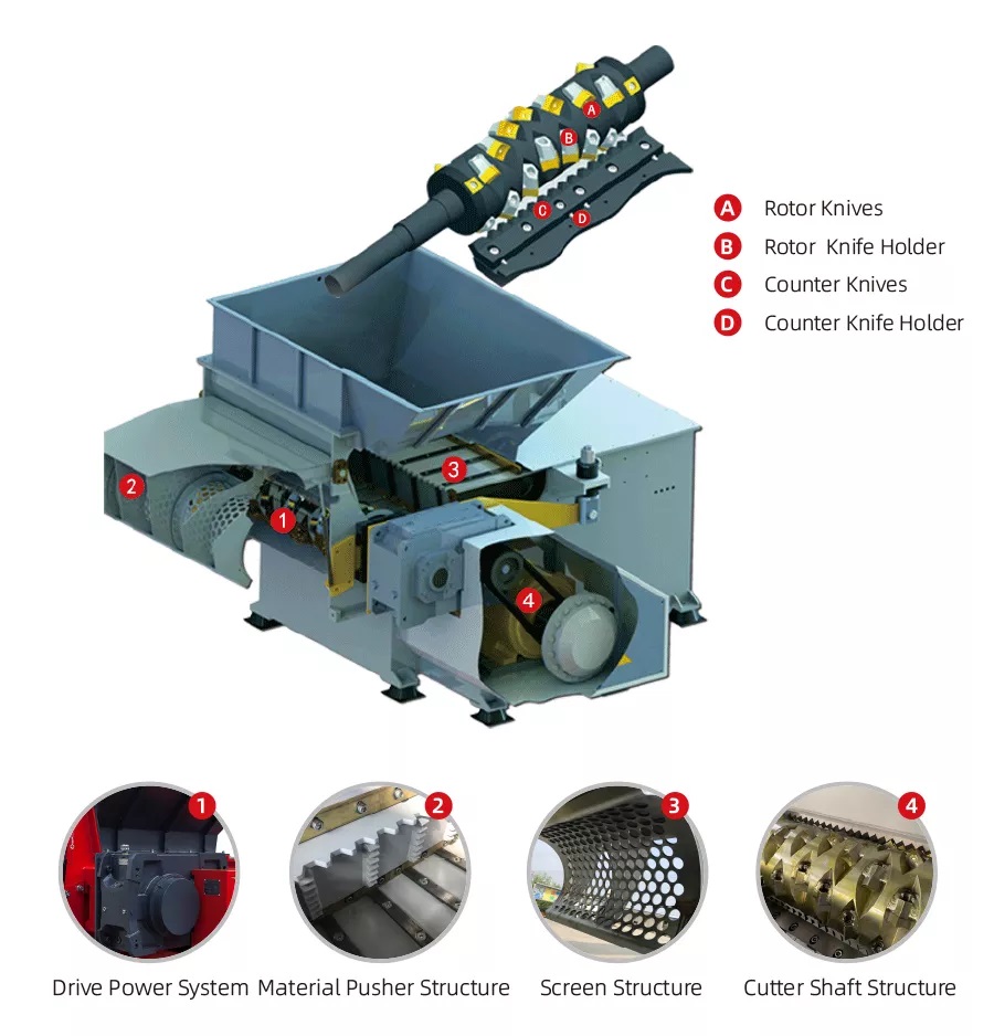 The cutter shaft with surfacing treatment can be used for shredding hard materials like light scrap metals