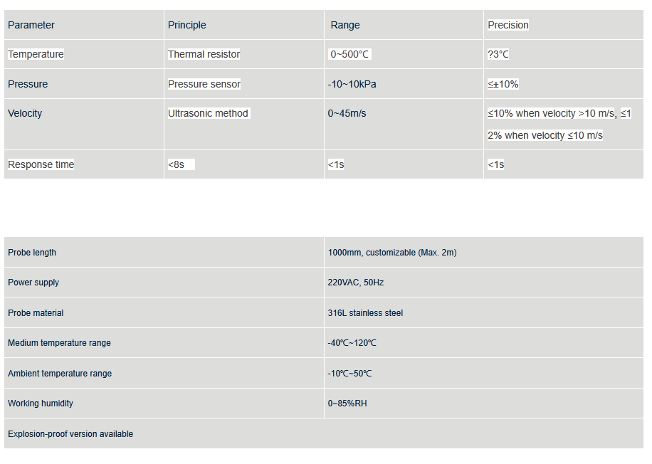The FLW-300 is based on the principle of the ultrasonic time difference method for gas flow rate measurement. The product adopts the innovative structure design of temperature, pressure and flow integration with simple installation and disassembly. It is used for flow rate measurement of boiler flue and chimney flue gas and is particularly suitable in the cases of a short straight pipe section, a low-speed flue of less than 5m/s, and a flue where it is not possible to increase the number of openings.