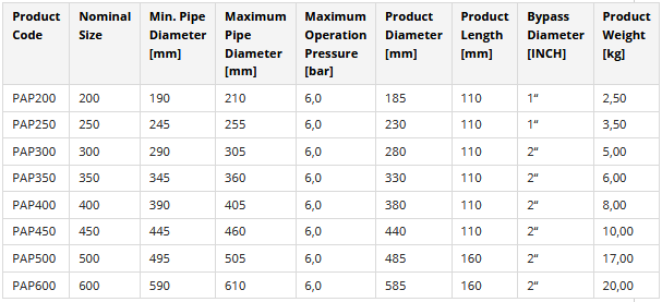 For blocking, bypassing and testing sewers and storm drains up to 600mm.