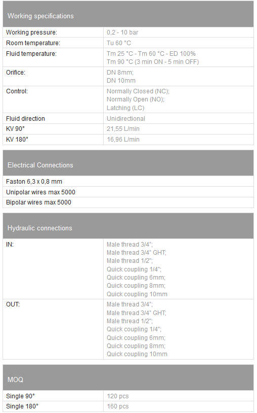 - Water Inlet Valve: Coffee & Tea, Food Equipment, Ice machines, Household Appliances, Hot Tubs, Water dispensers, Marine Applications, Etc.