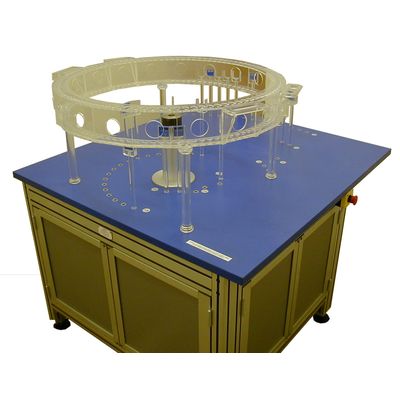 The exposure table has radially positioned film holders permanently mounted and a removable low scatter acrylic circular QFE holder. The exposure table is mounted on an Al Alloy framework. The frame has panels on two sides and double