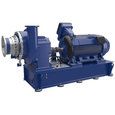 Integrally geared with hydrodynamic journal bearings. Stepless capacity control with inlet guide vanes and variable diffuser vanes. Flow range from 5,000 scfm to 30,000 scfm. Pressure to 35 psig.