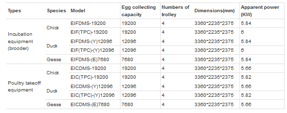 The function systems include the fan mixing system, the heating and humidification systems, egg turning-over system, as well as air-cooling and ventilation door systems. In addition, water heating/cooling and group control systems can also be equipped where needed.