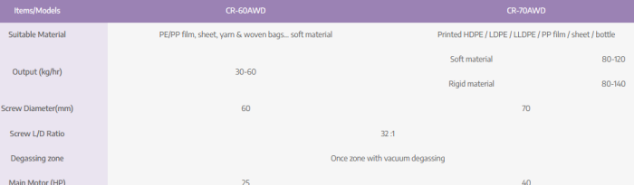 - Material: HDPE / LDPE / PP waste film / sheet / bags / bottles…