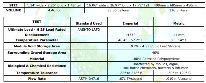 Tank Units: ET-1501 Single (1). Size in Feet: 1.48’ h x 1.34’ x 2.25’. Size in Inches: 17.72” x 16.06” x 26.97”. Size in Millimeters: 450mm x 408mm x 685mm.