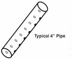 For perforated pipe, collection capacity per foot is equal to the cross sectional area of the perforations times the number of perforations per linear foot. Far a standard 4" perforated pipe, there are approximately eight holes (0.5" diameter) which provide 1.6 in2 of open area per linear foot of pipe. This provides approximately 1.1% open space to allow water to enter into the collection system. To increase the collection capacity and strength for the perforated pipe, a large volume of aggregate must be added to the system as well.