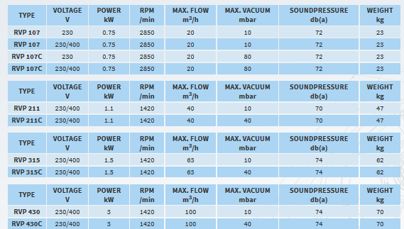 The Dutair vacuum pump programme consists of a series of 20 to 100 m3/h rotary vane pumps with a vacuum up to 10 mbar absolute. Oil lubrication ensures a long life span and a deep vacuum. Dutair vacuum pumps are robust, compact and are able to operate continuously. They all feature a multiple-filter system which results in minimum oil use. Dutair vacuum pumps have multiple uses in the packaging industry, the food industry, in printing, in thermoforming and in lifting equipment for vacuum handling.
