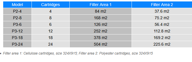 - Vertically mounted cartridge filters suitable for heavy dust load extraction