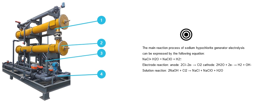 The main reaction process of sodium hypochlorite generator electrolysis can be expressed by the following equation: