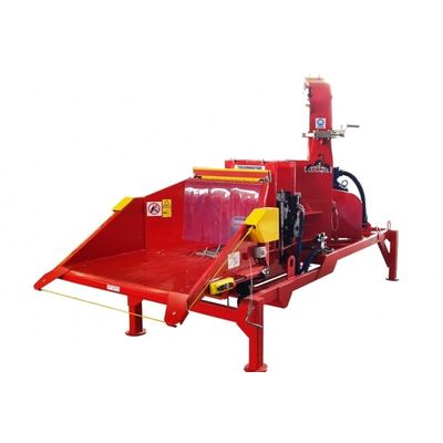 The chopper is equipped with a hydraulic propulsion system for feeding the material, driven by its own hydraulic pump.