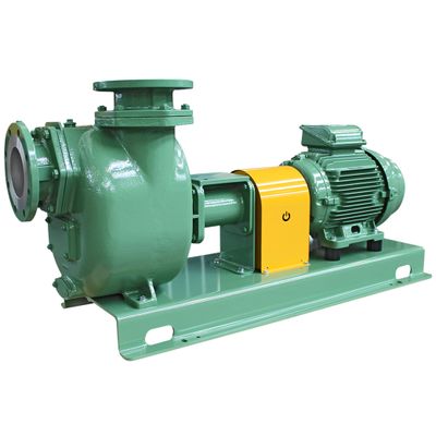 Self-priming pump with open impeller in long coupled design for the pumping of clear and abrasive liquids which are contaminated with solids in industry, construction industry as well as environmental and civil protection.
